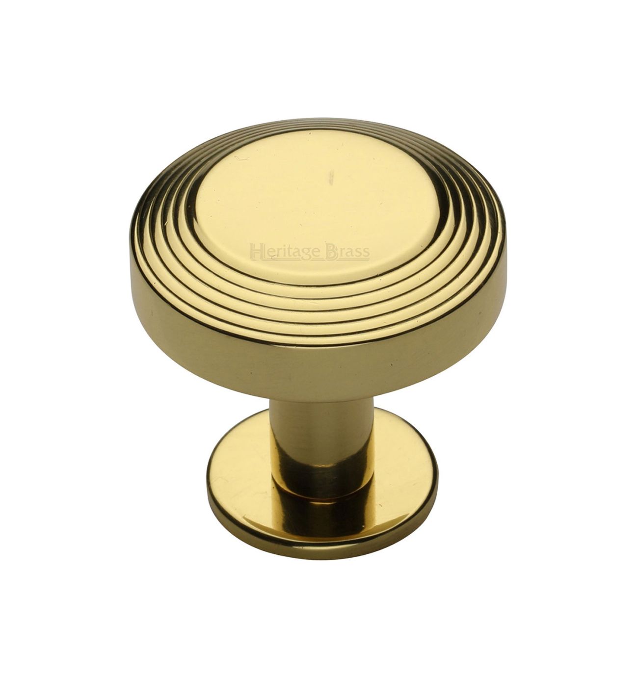 Heritage Brass Cabinet Knob Ridge Design with Rose 32mm Polished Brass finishUK Registered Design Number 6194410