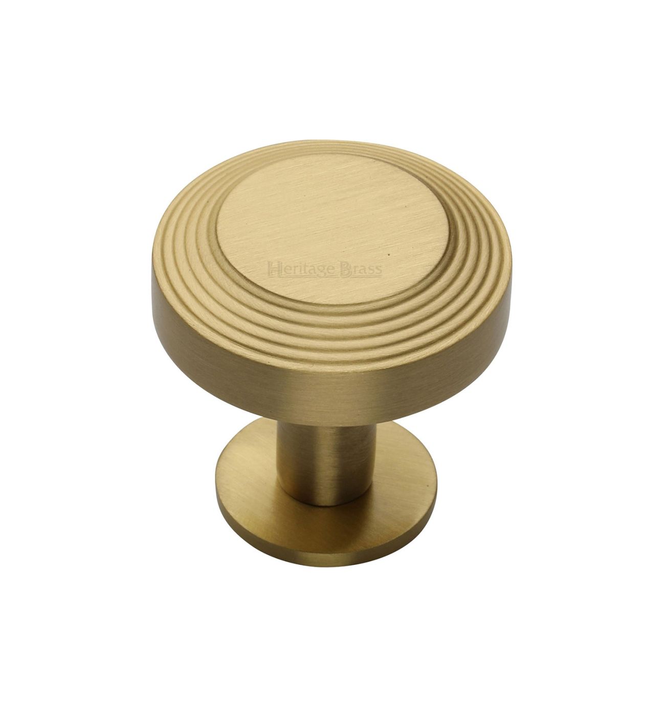 Heritage Brass Cabinet Knob Ridge Design with Rose 32mm Satin Brass finishUK Registered Design Number 6194410