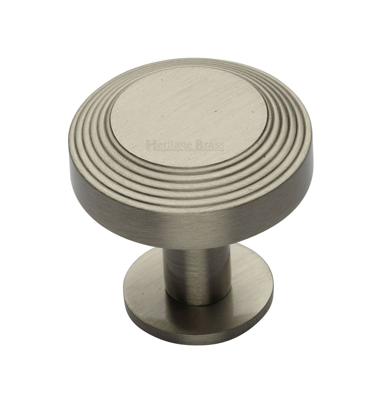 Heritage Brass Cabinet Knob Ridge Design with Rose 38mm Satin Nickel finishUK Registered Design Number 6194410