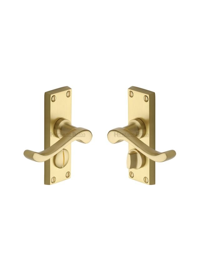Heritage Brass Door Handle for Privacy Set Bedford Short Design Satin Brass finish