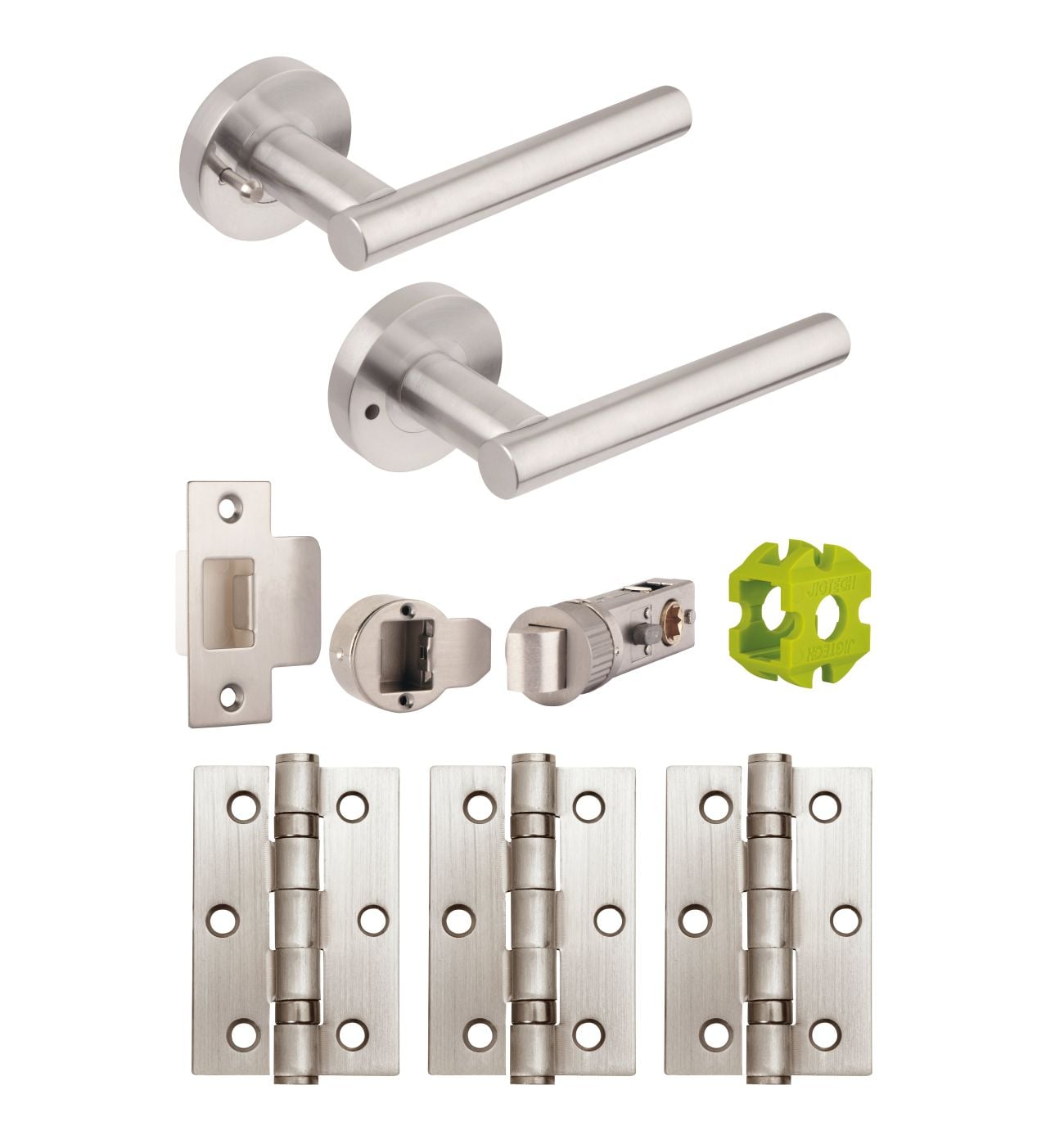 - Full Door Pack consisting of Levers, Privacy Latch (57mm backset) & Hinges