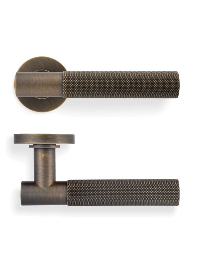 Valli Antonio Citterio Lever on Round Rosette (Zigrinato) - Antique Brass