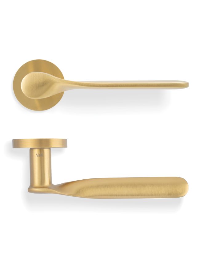 Valli Perkins&Will Lever on Round Rosette - Satin Brass PVD